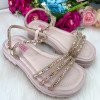 Delicada, confortável e cheia de brilho! Essa sandália é o acessório perfeito para compor looks elegantes e sofisticados das pequenas princesas. Detalhes do modelo: Cor rosé/nude, super versátil e fácil de combinar. Tiras finas com aplicações em strass multicolorido, que iluminam o visual a cada passo. Fechamento com fivela ajustável, garantindo segurança e conforto. Perfeita para festas, aniversários, daminhas e ocasiões especiais, sem abrir mão do conforto.