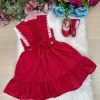Um modelo clássico e encantador, feito para brilhar em momentos especiais.O vestido infantil valeria combina elegância e delicadeza em cada detalhe — ideal para festas, casamentos, batizados, aniversários e celebrações em família. Descrição detalhada: Modelagem: Vestido evasê com babado na barra, proporcionando movimento e volume na medida certa. Tecido: Techno ligth 100% poliester de alta qualidade, com leve brilho e toque macio, garantindo conforto e caimento perfeito. Detalhes: Aplicações de renda branca trabalhada, criando um visual romântico e delicado. Laço de pérolas no centro da cintura, com acabamento dourado e brilho elegante Fechamento com lastex, que se ajusta ao corpo da criança, oferecendo conforto e mobilidade. Laço para amarrar na cintura, ajustável e decorativo. Acabamento: Costuras reforçadas e acabamento premium, ideal para uso prolongado e eventos formais. Evitar puxar o lastex ou o tecido com força ao vestir. Um vestido que une charme, qualidade e conforto — perfeito para transformar qualquer momento em um registro inesquecível! Informações Importantes As medidas podem variar em até 2cm. Recomendamos sempre consultar a tabela de medidas antes da compra para evitar erros. Para um volume extra, indicamos o uso de saiote de armação, vendido separadamente na categoria Acessórios. Tiara e outros acessórios não acompanham o produto, mas estão disponíveis em nosso site. Calçado vendido separadamente, disponível na categoria Calçados As cores do produto podem sofrer variações de tonalidade conforme a configuração da tela do seu dispositivo.