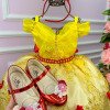 Confeccionado em tecido misto possui forro em poliéster e algodão para não machucar a criança e proporcionando um caimento incrível e sofisticado, possui gola redonda, comprimento médio, mangas curtas, possui elástico nas costas para melhor ajuste, acabamento com lindo laço na parte posterior do vestido completa o look dos sonhos! A RENDA PODE VARIAR DE ACORDO COM O LOTE * Acompanha Luva * Medidas podem variar em até 4cm * Caso queira o vestido mais armado, recomendamos o uso do saiote ou anágua de armação, disponível no nosso site na categoria acessórios. * Tiara vendida separadamente, disponível em nosso site na categoria acessórios.