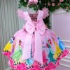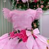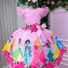 Vestido Tematicos Luxo Princesas Disney Rosa Manga Tule