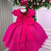 TECIDO 100% POLIÉSTER Confeccionado em tecido misto possui forro em poliéster e algodão para não incomodar a criança e proporcionando um caimento incrível e sofisticado, possui gola redonda, comprimento médio, mangas curtas, contém, também, elástico nas costas para melhor ajuste, acabamento com lindo laço na parte posterior do vestido completa o look dos sonhos! * Medidas podem variar em até 2cm. * Caso queira o vestido mais armado, recomendamos o uso do saiote ou anágua de armação, disponível no nosso site na categoria acessórios. * Tiara vendida separadamente, disponível em nosso site na categoria acessórios. * Calçados vendido separadamente, disponível em nosso site na categoria calçados. * LEMBRANDO QUE PODERA HAVER VARIAÇÃO DE TONALIDADE DO PRODUTO DEPENDENDO DA TELA DO SEU DISPOSITIVO